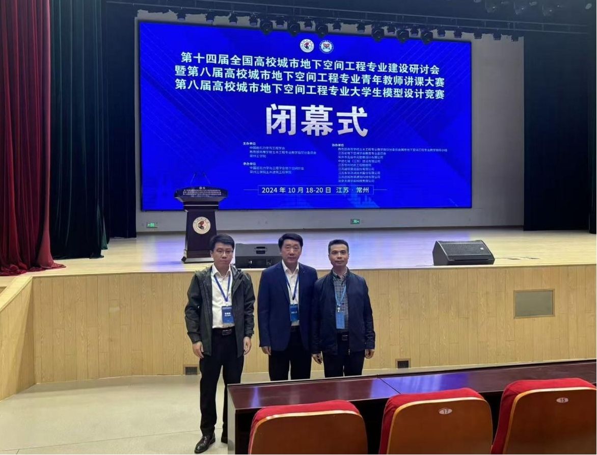 土木与建筑工程学院院长徐斌、智能建造教研室主任刘优平、智能建造专业负责人张潮潮一行3人参加了本次研讨会。作为下一届全国高校城市地下空间工程专业“一会两赛”的承办单位,徐斌院长在城市地下空间工程专业建设工作组预备会议及大会闭幕式上作了致辞,邀请全国高校城市地下空间工程专业师生来我校参加下一届“一会两赛”活动。